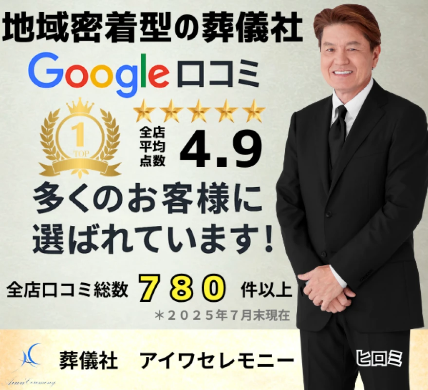 アイワセレモニー新座店は、 新座市で長年ご信頼をいただいてきた、 地域に根ざした葬儀社です。 「初めてのことで、何から始めたらいいか分からない」 そんなご遺族のお声に、誠実でわかりやすいご案内でお応えし、 事前のご相談からご葬儀後のサポートまで、 一貫して温かく丁寧にお手伝いいたします。 自社式場の館内は家族葬のご葬儀にも最適な、落ち着いた空間設計。 ご家族だけでゆっくりと故人を偲ぶ時間を、 静かに、安心してお過ごしいただけます。 “あの人らしく見送ってあげたい” その想いに、地元の葬儀社として真摯に寄り添うのが、 私たちアイワセレモニー新座店の変わらぬ姿勢です。