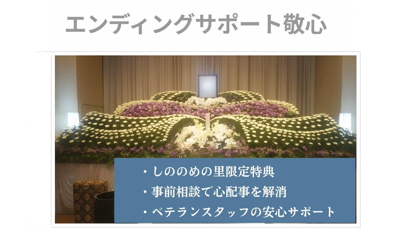 エンディングサポート敬心は、家族の負担を極力抑えた上で、想いのこもった葬儀を行ってくれます。祭壇や看板は「本当にこの費用で?」となるくらい立派と評判。富士見市で葬儀を検討している方に、とってもオススメな葬儀社です。