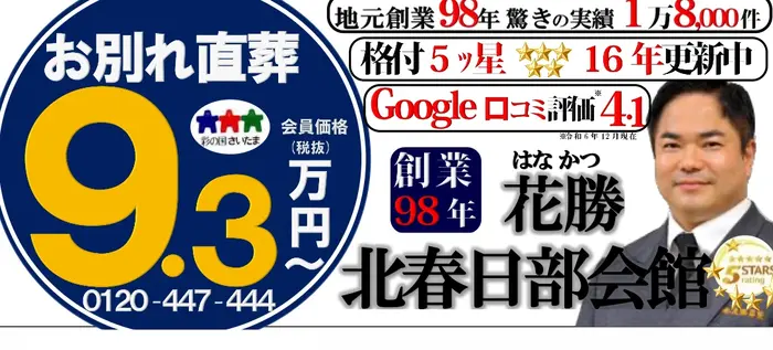 花勝葬祭(北春日部会館)に葬儀のご依頼をしたい方は、050-5231-1408までお電話ください。24時間365日、夜間や休日問わずいつでも繋がります。