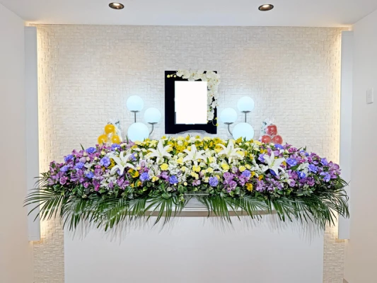 374,000円〜弊社の家族葬ホールで、お花の祭壇を飾り、こじんまりと少人数で行うことができるプランです。1日1組貸切ホールなので、周りを気にせずゆっくりと15名以内の小さな葬儀・家族葬を行うことができます。 ※料金はLINEお友達登録の割引を適用後の価格です