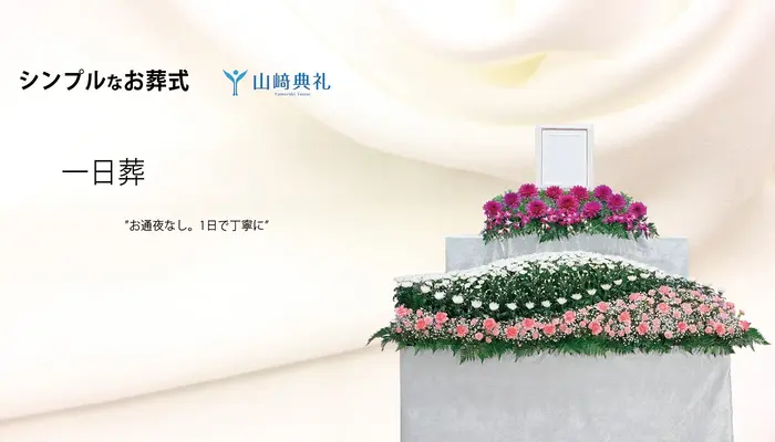 山崎典礼|シンプルなお葬式は一日葬や家族葬はもちろんのこと、火葬式や一般葬など様々な葬儀形式に対応しています。