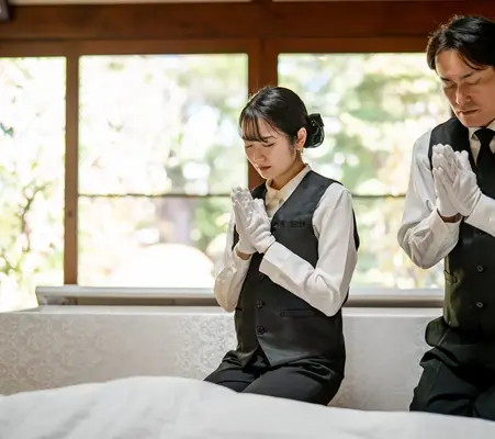 ご自宅での安置が難しい場合は、葬儀社の霊安施設でお預かりすることが可能です。担当者にご相談ください。