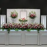 コスモ葬祭の花祭壇の他社との違いは、圧倒的なボリュームとクオリティ。同じ値段でも自社で仕入れから作成もしているので、そのボリュームとクオリティの高さは他社と比べものになりません。華やかな祭壇で式場全体を明るくお別れすることができます。