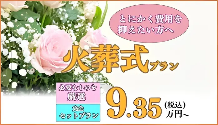 火葬のみのプランは93,500円(税込)です。他に火葬料金、ドライアイス代、ご自宅安置料金などがかかります。参列者の人数によっては待合室料金が発生する場合があります。また、オプションで棺にお花を入れることも可能です。