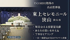 東上セレモ(狭山ホール)は、均一で高品質なサービスが国際規格によって認められた「ISO9001」を取得している企業です。サービスレベルを向上させ、葬儀を行う方に満足してもらうため。狭山で安心して葬儀を行いたい方にオススメです。