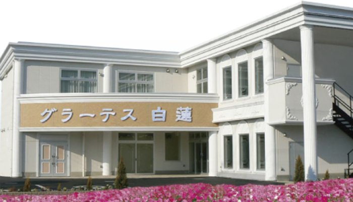 グラーテス白蓮は白岡市にある斎場です。式場が一階と二階それぞれにありますが、葬儀は一日一組限定で行います。全館を使用することで大型の葬儀も行えるので、家族葬から100名を超える葬儀まで対応可能。また、館内はバリアフリーに対応し、車いす用トイレ、エレベーター、を完備。さらに、普通斎場にはない、シャワー室もあります。斎場とは思えないほどの充実した設備は利用者から高い評判を得ています。