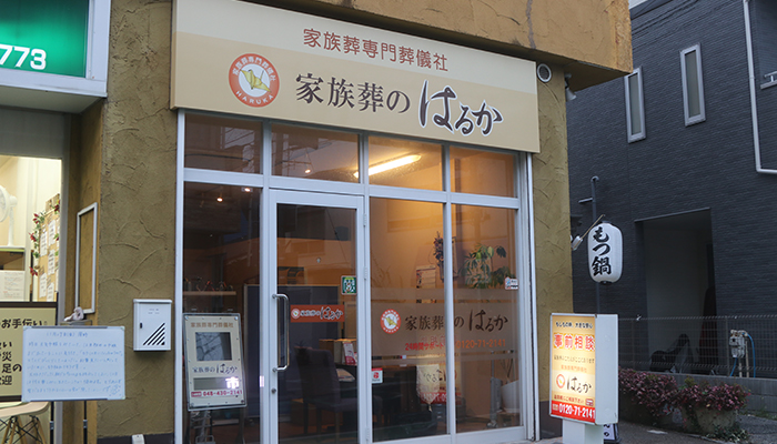 家族葬のはるかは、JR「蕨駅」から徒歩10分。駅前通りをまっすぐ進んだところにあります。家族のことを第一に考え、どんな不安な時でも安心感を与えてくれる葬儀社です。