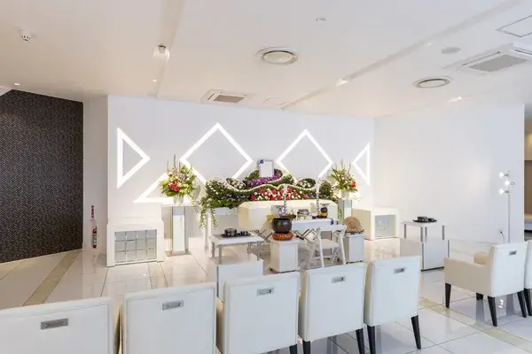 モダンなつくりの2つの大きな式場と、少人数向けの式場、2つの会食場を用意しております。 地域で初のプロジェクションマッピングも備えており、故人様にふさわしい空間と時間を提供させていただきます。