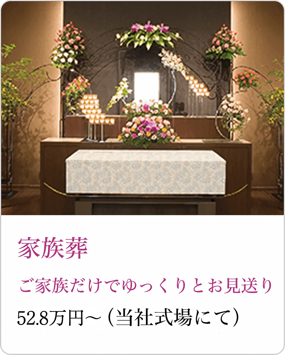 | 葬儀形態 | 火葬式・一日葬・家族葬・一般葬 |
