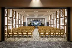 JR菊川駅から車で4分。 高級感あふれる館内で、60席の式場Aと親しい方たちでお見送りができる20席の式場Bを用意しております。ご葬儀において故人様にふさわしい空間と時間を提供させていただきます。