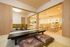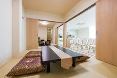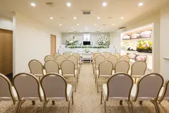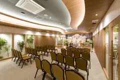 静岡市駿河区、「東静岡」駅からタクシー5分のところに少人数から32名様まで利用可能な式場と、会食場を用意しております。 地域初のプロジェクションマッピングも備えており、故人様にふさわしい空間と時間を提供させていただきます。