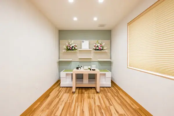 家族葬のタクセルは、家族葬専門の斎場・葬儀場です。 1組のご家族様で貸切なので、他家に気にせずゆっくりとしたご葬儀が執り行えます。 コンパクトな式場で少人数の家族葬に最適な式場には、安置室の他、宿泊に必要な設備も整っています。