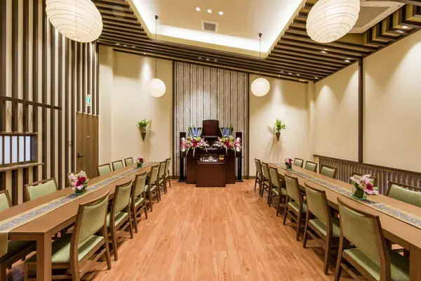 静岡市駿河区、「東静岡」駅からタクシー5分のところに少人数から32名様まで利用可能な式場と、会食場を用意しております。 地域初のプロジェクションマッピングも備えており、故人様にふさわしい空間と時間を提供させていただきます。