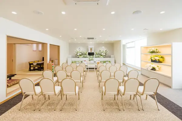 家族葬のタクセルは、家族葬専門の斎場・葬儀場です。 1組のご家族様で貸切なので、他家に気にせずゆっくりとしたご葬儀が執り行えます。 コンパクトな式場で少人数の家族葬に最適な式場には、安置室の他、宿泊に必要な設備も整っています。