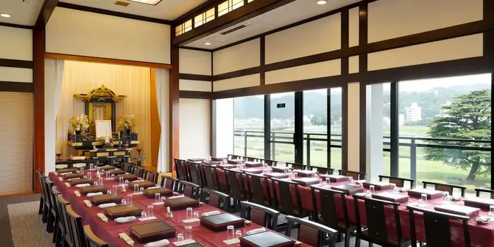 平成1998年に開業されたこの斎場は、日本旅館のような落ち着いた雰囲気が漂う格調高い施設です。2階・3階の会食場からは、隣接する渡良瀬川が一面に広がり、観光名所である織姫神社も望めます。アクセスは、東武伊勢崎線の足利市駅から徒歩約3分で、特急を利用すれば東京方面からの会葬にも便利です。3階の多目的ルームは渡良瀬川を一望でき、葬儀や法要の会場としてもご利用いただけます。さらに、親族控室や安置室などの設備も充実しており、家族葬から社葬まで、宗教・宗派を問わず安心してご利用いただけます。