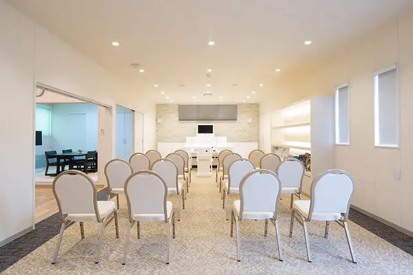 家族葬のタクセルは、家族葬専門の斎場・葬儀場です。 1組のご家族様で貸切なので、他家に気にせずゆっくりとしたご葬儀が執り行えます。 コンパクトな式場で少人数の家族葬に最適な式場には、安置室の他、宿泊に必要な設備も整っています。