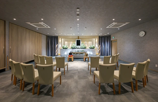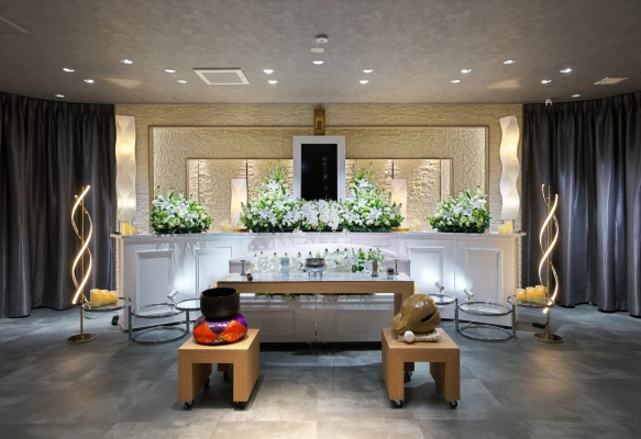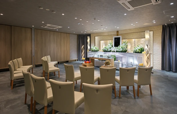 385,000円〜自社家族葬ホールを利用して通夜・葬儀を行うプランです。 (目安参列者数20名程度) ※料金は会員価格です。