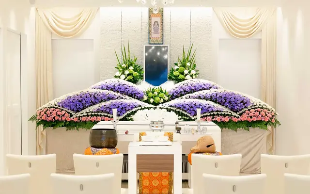 ご家族によってお別れの方法は様々です。生花をたくさん飾って差し上げたり、シンプルに静かに送ってあげたいなど、大切な方への気持ちを形にできる家族葬専用ホールです。