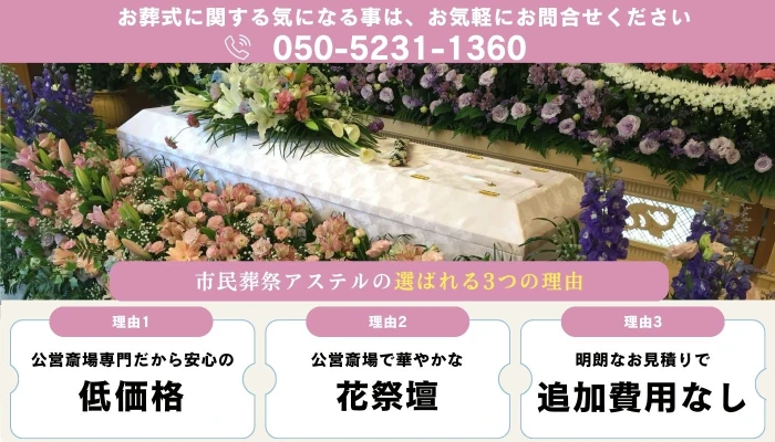 市民葬祭アステルは一日葬や家族葬はもちろんのこと、火葬式や一般葬など様々な葬儀形式に対応しています。