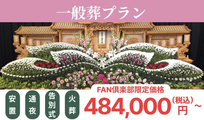 363,000円〜遺族・親族20名未満で、一日で葬儀・告別式を行うプランです。 20名以上の場合にもご相談ください。 ※別途、施行プランに応じて10%の奉仕料を承ります。