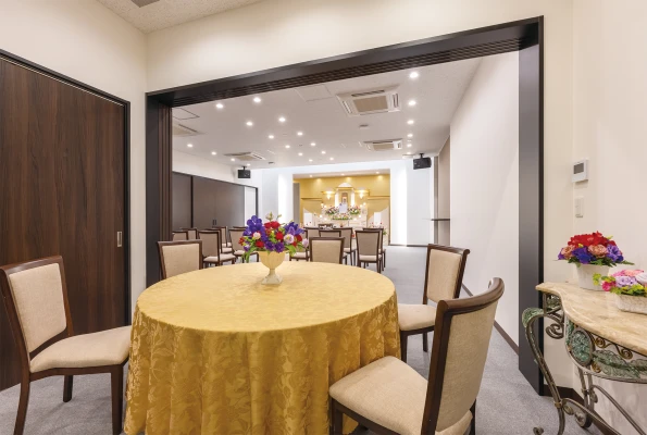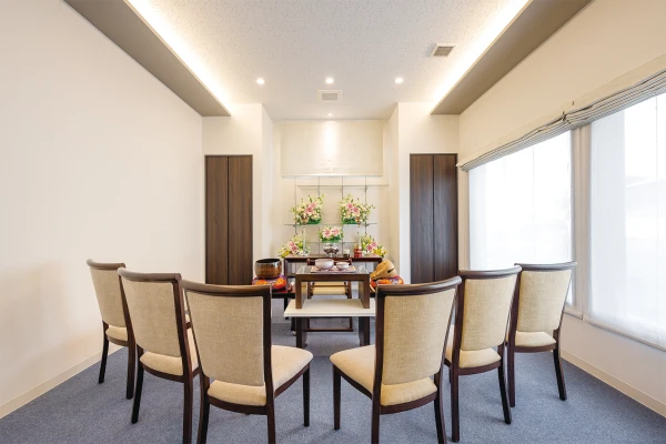 24時間直接お預かり可能な安置室をはじめ、シャワー室完備で付添いや仮眠にも対応できる控室、そして自社製のお料理で会葬者へのおもてなしと感謝の気持ちを伝える会食室など、快適にお過ごしいただける設備が整っています。