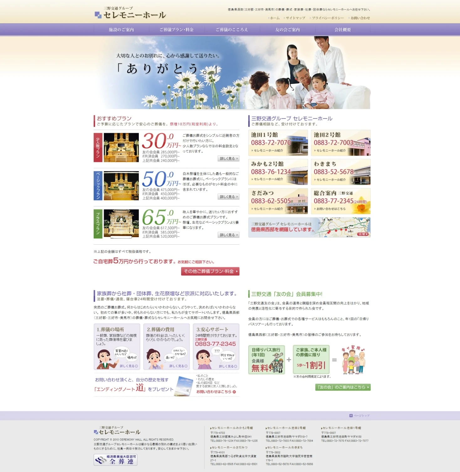 三交フラワーは三好市に密着した葬儀社です。24時間365日、お迎えも事前相談にも対応しています。