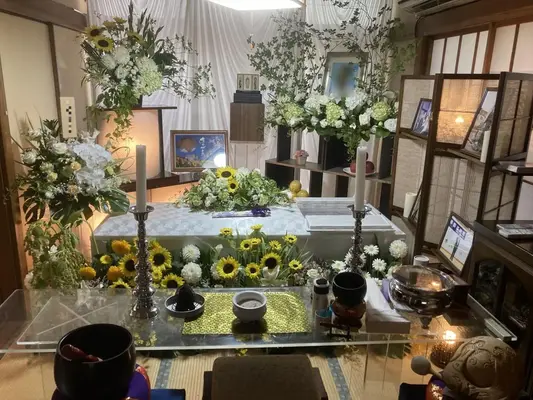 危篤の時から葬儀までいろいろサポートして頂きました。とても、自宅でできるような広さではなかったのに、大丈夫自宅でやりましょう!と言って頂き、それから娘たちと母の写真選び、いろいろ、母の思い出を語りながら、悲しみよりなんか楽しかったです。そして、母でいっぱいの素敵なお葬儀にして頂き、母も喜んでくれたと思います。