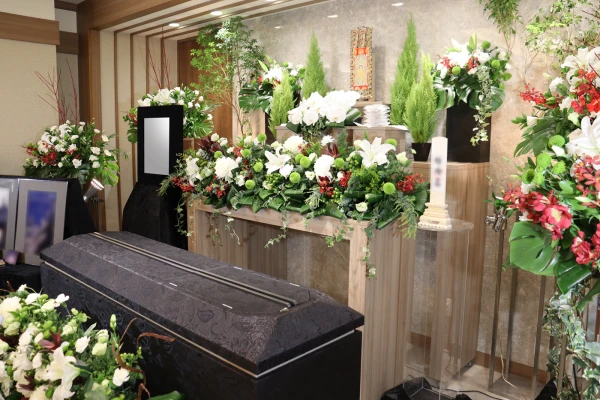 176,000円〜通夜・告別式を行わずに沢山のお花を手向けてお別れするプランです。 華やかなお花と花束を捧げた後にご火葬となります。 費用を抑えたシンプルなご葬儀ですが、ご希望により僧侶の読経も行えます。