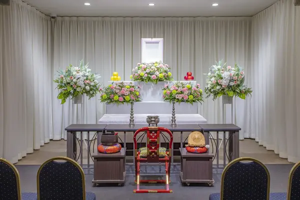日本互助会の自社式場「調布家族ホール」は、一日一組限定の貸切りでご利用いただけます。近親者だけで行う家族葬から、50人規模の一般葬まで対応。親しい方だけの空間で、故人との最後のお別れの時間をお過ごしください。
