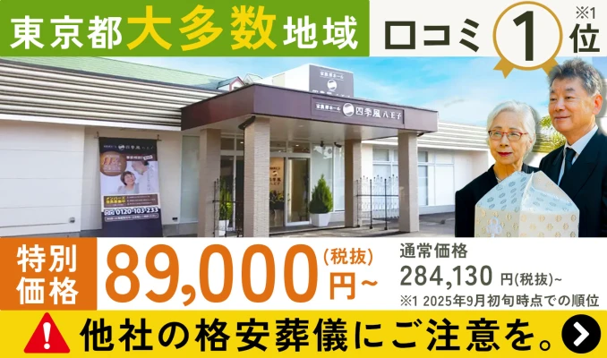 料金 | 家族葬 :¥440,000〜(税込) 一日葬 :¥330,000〜(税込) 直葬・火葬式 :¥220,000〜(税込) |