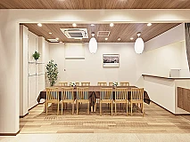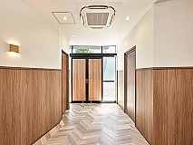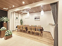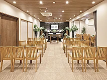 広すぎず狭すぎない家族葬に適した、品質感のある内外装のセレモニーホールです。ご家族や身近なご親族が居心地のよい空間づくりを心がけております。