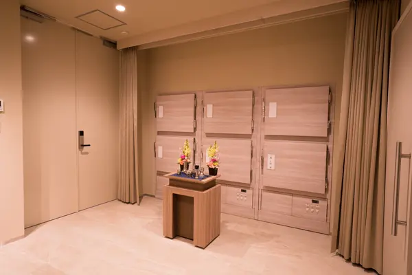 自宅で安置したくても「マンションだから」など様々な事情があり安置が難しい方もいらっしゃるかと思います。そういった方に是非ご利用いただきたいのがあおばの火葬式 府中営業所です。府中市分梅町に安置施設を完備。お線香お手向けも可能(要電話確認)で、葬儀の日まで故人に淋しい想いをさせません。