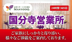 「仏事サポートの万葉堂(株式会社MANYODO)」は、東京都国分寺市にある葬儀社です。24時間365日、事前相談を受け付けており、最後のお別れの時を万全サポートさせていただきます。また故人様らしいオリジナル祭壇の作成も得意としているため、国分寺市周辺で葬儀をお考えの方はぜひ一度ご相談ください。