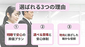 日本マーケティングリサーチ機構から「日野市お客様満足度」「安心価格で信頼できる葬儀社」「希望のプランが必ず見つかる葬儀社」NO.1を三冠に選ばれました。全国でも30名程しかいない「遺体感染管理士」が在籍している葬儀社です。コロナで亡くなると「火葬だけ」しかできないのが通常ですが、遺体感染管理士が適切に処置を行うことで、あなたの望む葬儀ができます。