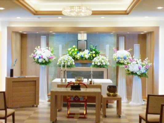 日華多磨葬祭場は府中市にある火葬場併設斎場です。100名以上の葬儀に対応可能な式場、安置室、火葬場など葬儀を行うのに必要な設備が全て揃っているので、葬儀から火葬までを一カ所で行うことができます。また、広々とした館内は、落ち着いて故人を見送るのにピッタリとなっており、大変評判のいい斎場です。