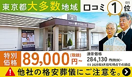 料金 | 直葬・火葬式 :¥89,000〜(税込) 一日葬 :¥320,293〜(税込) 家族葬 :¥342,293〜(税込) |