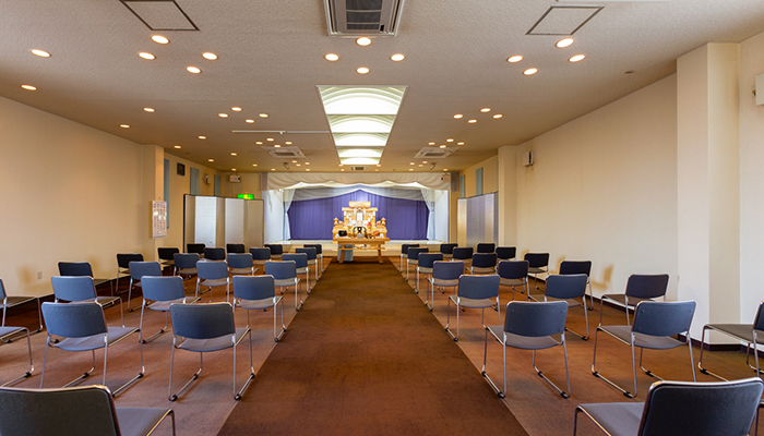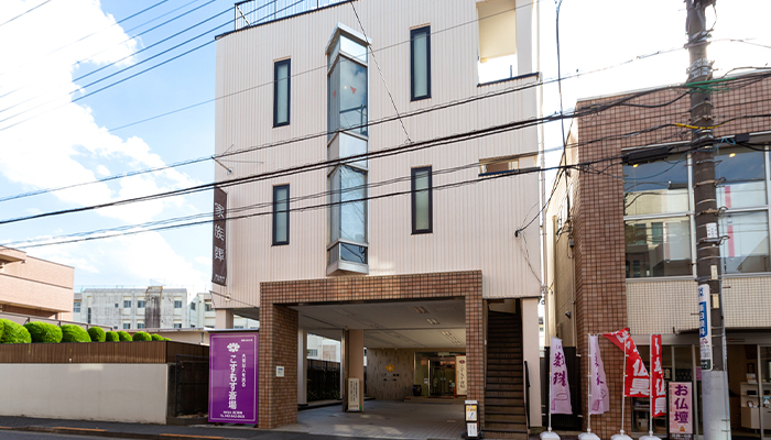 八王子駅から徒歩10分、八王子市元横山町にある家族葬専用式場です。 家族だけでゆっくり見送るのにぴったりな空間です。浴室付きの控室で通夜の晩もおくつろぎいただけます。