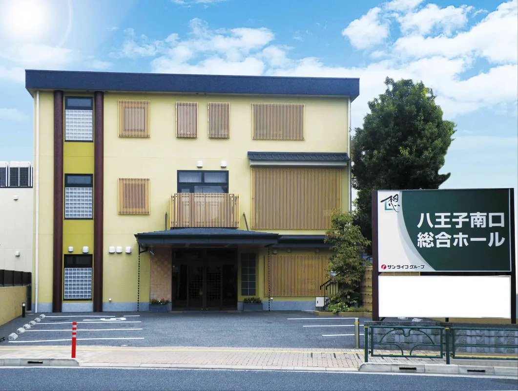 サン・ライフ(八王子総合ホール)は、京王高尾線「山田」駅より徒歩1分、八王子緑町郵便局のすぐ近くにあります。1933年に創業し、年間の葬儀施行は7000件にものぼる、地域の方々に選ばれ続けてきた葬儀社です。