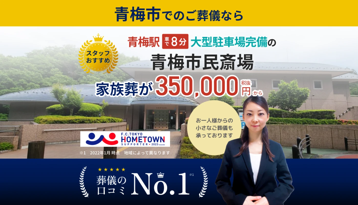 ▶︎青梅市で「品質に妥協しない低価格葬儀」を! ▶︎全体口コミ件数「200件」突破 ▶︎サービスは手厚く、価格は安く! ▶︎葬儀後の遺言や相続も終活カウンセラーに相談できるから安心
