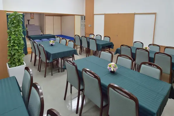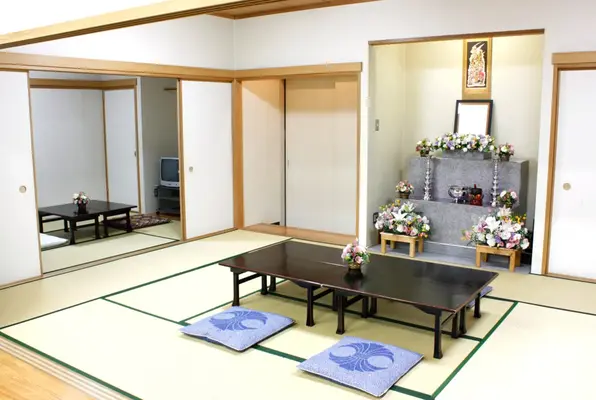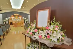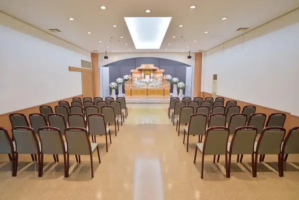 細部にわたり、ゆったりとした落ち着いた雰囲気の式場です。 家族葬から一般葬まで対応可能な式場は、メモリアルコーナーなどをご用意し、大切な方を想い出を添えてお見送りできます。