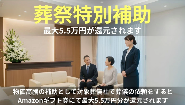 | 料金 | 直葬・火葬式 :¥110,000〜(税込) 一日葬 :¥352,000〜(税込) 家族葬 :¥418,000〜(税込) 一般葬 :¥550,000〜(税込) |