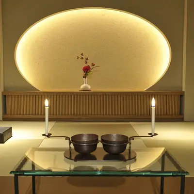 24時間いつでもお体をお預かりできる安置室を完備しています。畳のある個室になりますので、ご自宅へのお帰りが難しい方でも、ぬくもりのあるお布団でご安置できます。 ご面会も承っていますので、故人様とのプライベートなお時間をお過ごしいただけます。式場と併設しているため、移動の負担もありません。 こちらのお部屋は6名までのご葬儀でご利用いただくことも可能です。