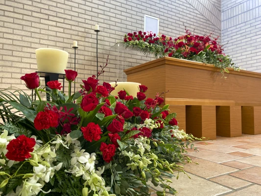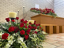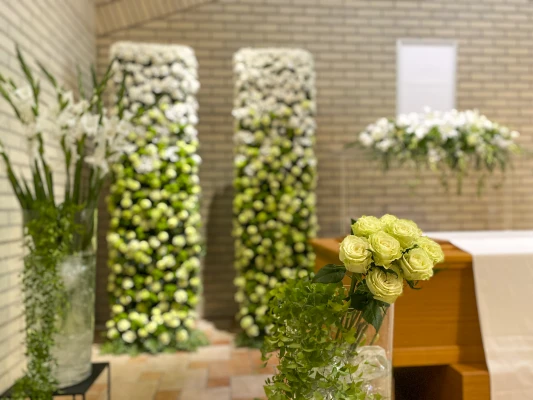 ご用意する祭壇のお花は全て新鮮な生花となります。お飾りしたお花はすべてお棺の中にお入れします。また、納棺師によるラストメイクのご案内も行っています。メインホールをご利用の場合にはお好きな曲をエレクトーンで生演奏するサービスもございます。 皆さまのお話を丁寧に伺いながらより良いご提案を行えますよう、あたりまえの心遣いを大切にしています。