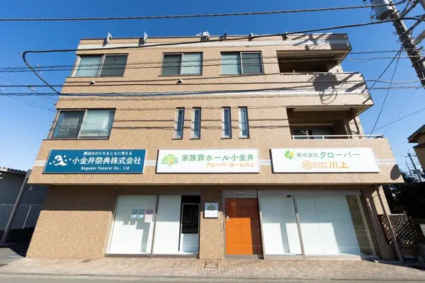 クローバーグループ小金井祭典でございます。自社ホールは小金井市前原町、前原坂下の教習所先のファミリーマートのすぐ横にございます。