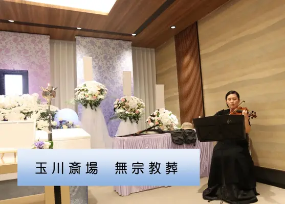無宗教葬はもちろん、仏教などのご葬儀でも・・・ 故人の好きだった曲、思い出の曲のリクエストを頂きプロの音楽家が生演奏し厳粛に開式します。 家族はもちろんのこと、会葬者からも「音楽で故人への想いを馳せることができた」と大評判。もちろんサービスです。