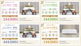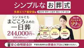 料金 | 直葬・火葬式 :¥158,400〜(税込) 一日葬 :¥268,400〜(税込) 家族葬 :¥378,400〜(税込) 一般葬 :¥488,400〜(税込) 直葬・火葬式 :¥217,800〜(税込) 一日葬 :¥327,800〜(税込) |