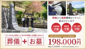 217,800円〜・火葬式とお墓がセットになったプラン ・お通夜・告別式を行わず火葬だけを行ない、永代供養つきのお墓へ埋葬いたします。 ・お墓がないなど様々な理由で、今後のご供養に不安がある場合におすすめです。