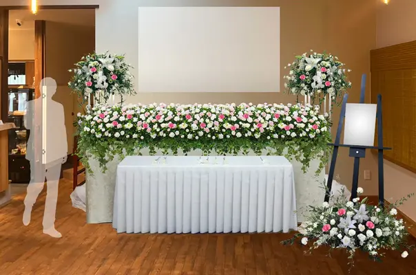 594,000円〜知人 友人を招き皆で送り出す最適なプランです。祭壇も数種類からお選びいただけます。色合いの変更も可能です。