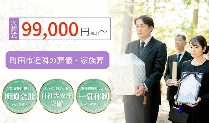 料金 | 直葬・火葬式 :¥99,000〜(税込) 直葬・火葬式 :¥132,000〜(税込) 一日葬 :¥352,000〜(税込) 一般葬 :¥459,800〜(税込) |