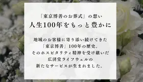 「東京博善のお葬式-桐ヶ谷斎場-」は古くから港区地域にお住まいのたくさんの方々や著名人にもご利用いただいております。そんな歴史の深い式場で家族葬から社葬までお客様に合った上質なご葬儀をご提案いたします※「東京博善のお葬式」は東京博善(株)のグループ企業である、(株)広済堂ライフウェルが葬儀施行を執り行うサービスです。